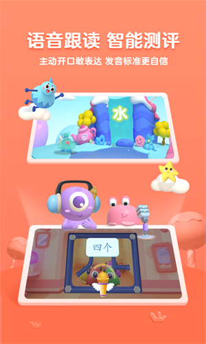 3、拥有语音跟读功能,通过智能测评的方式来纠正孩子的汉字发音,让他们的发音更准确。
