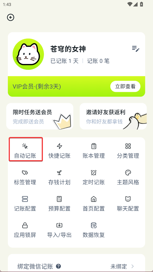 2、点击自动记账选项