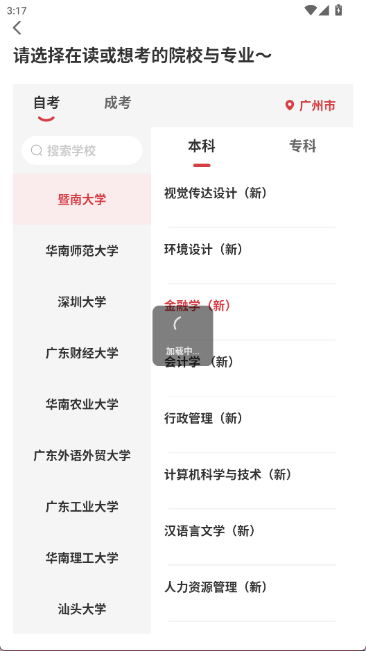 3、选择院校和专业进行切换