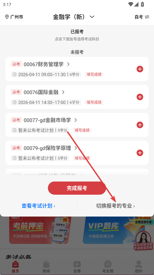 2、点击切换报考的专业