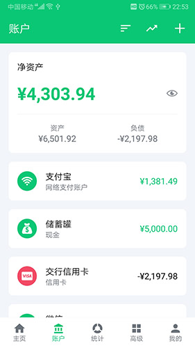 4、支持多账户,包括信用卡、借记卡、钱包和充值卡等;