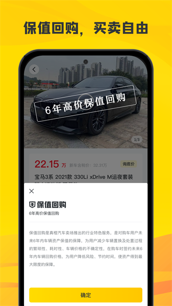 应用推出保值回购服务,对车辆资产价值进行保障的保障,减少车辆价格的不确定性;