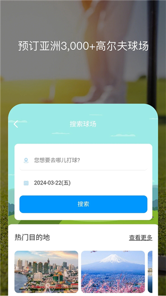 4、点击搜索,用户可以在这里快速的一键搜索自己喜欢的高尔夫场地