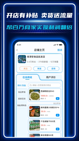 在应用中就能申请开店,便于分享推广自己的精选好货;