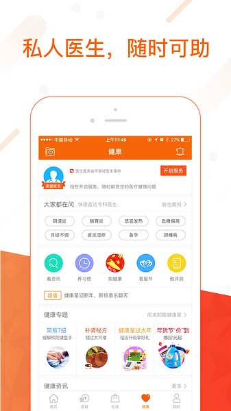 向用户提供一对一的专属家庭医生,可与医生进行在线进行对话问诊,对话支持图文信息。为用户提供疾病、用药、营养、心理等健康服务。