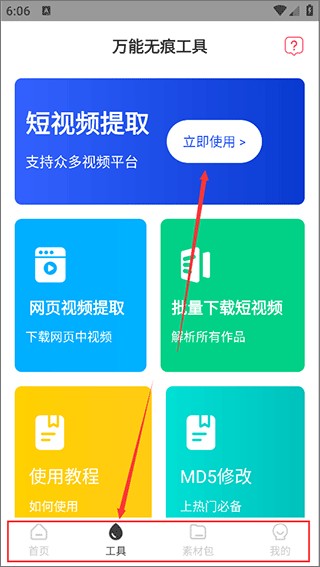 3、返回素材多多软件,进入“工具”页面,选择“短视频提取”功能。