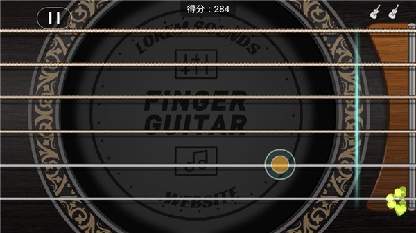 1、模拟弹奏:横放手机拨动屏幕模拟拨片,屏幕显示琴弦指法与音符位置。