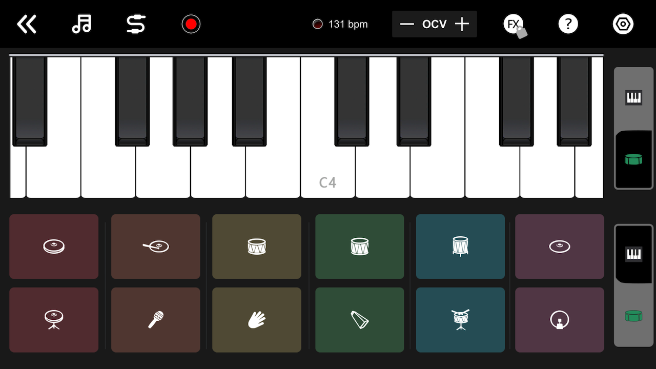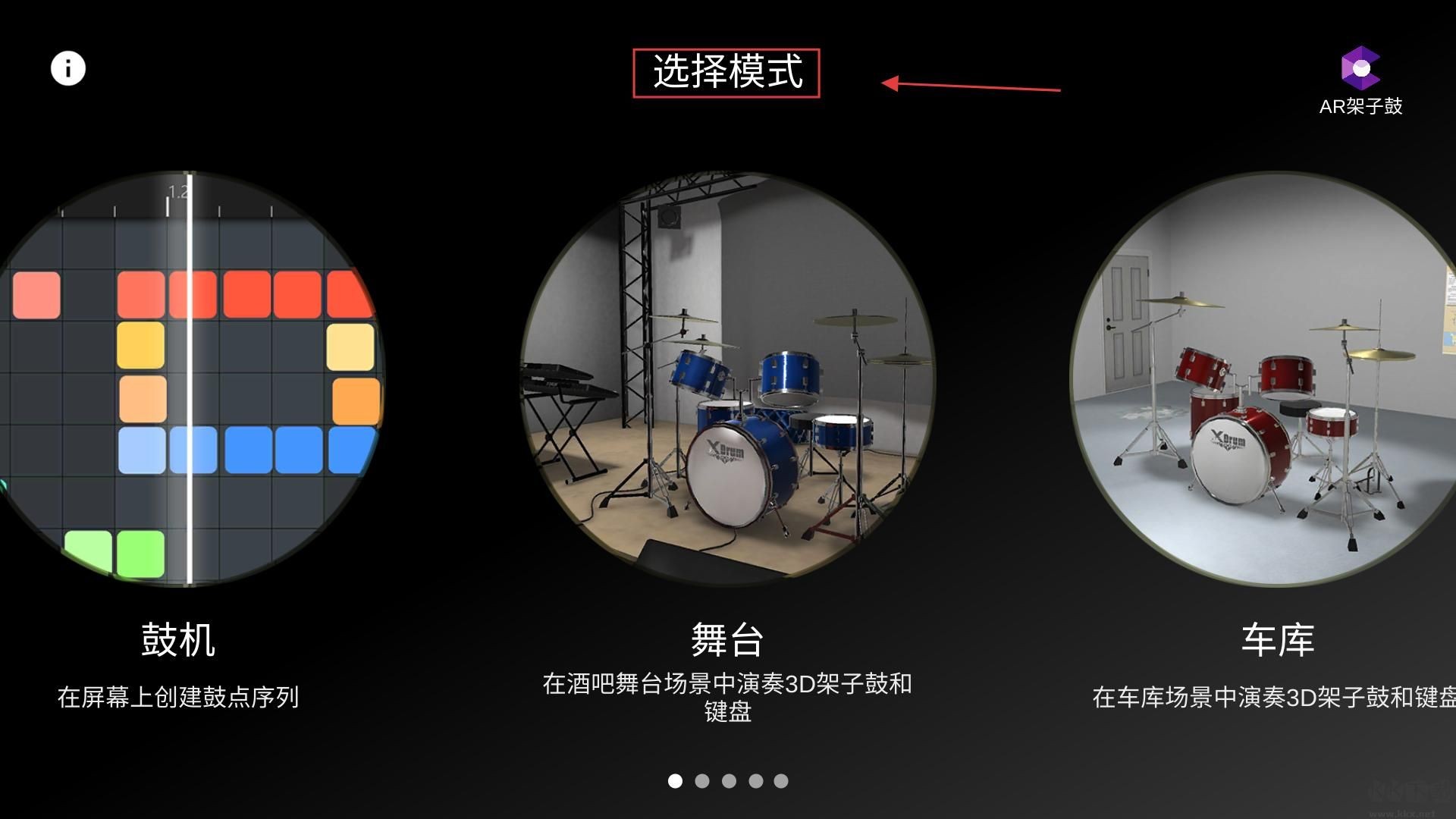 1、启动X架子鼓应用后选择模式,鼓机可编节奏序列,舞台与车库模式支持演奏鼓组和键盘,开启创作;