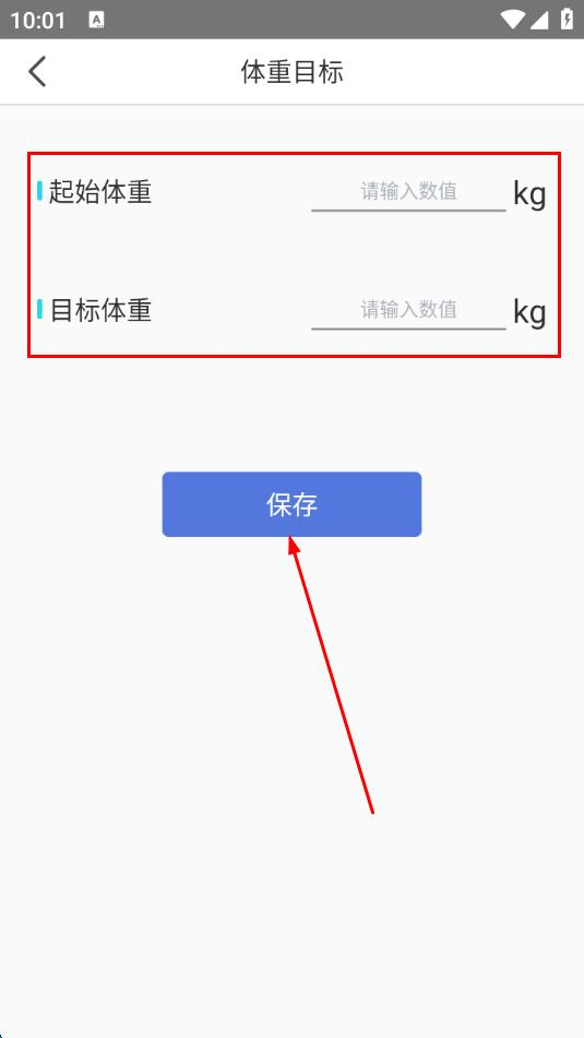 3、输入自身起始体重与期望目标体重,点击保存完成设置;