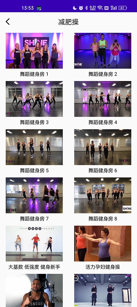 5、燃脂:包含燃脂舞、有氧操等多种内容,助力快速燃烧脂肪实现瘦身。