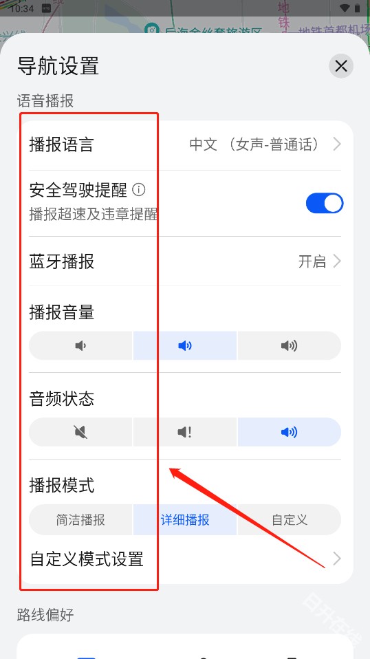 3、在设置列表中选择“导航设置”,找到语音播报相关选项;