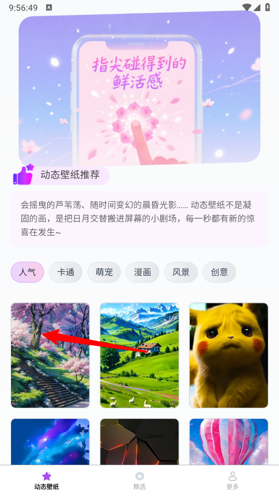 2、进入壁纸页面,依据分类筛选出所需风格壁纸。