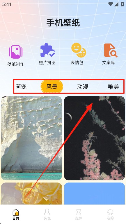 2、点击顶部栏目,可快速切换不同类型的壁纸内容。
