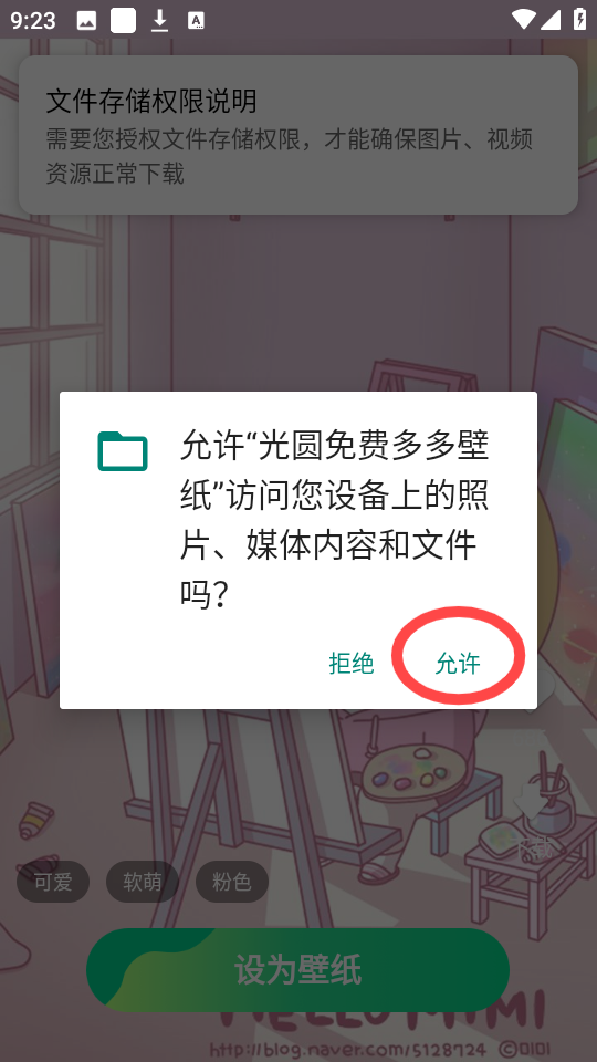 5、点击“下载”,允许相关权限后,即可成功保存壁纸至设备。
