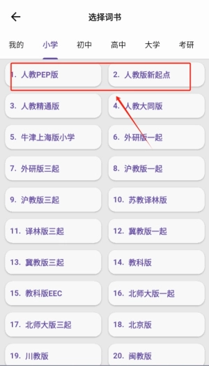 2、挑选适配自身的英语教材,跟随系统指引,开启高效单词记忆学习。