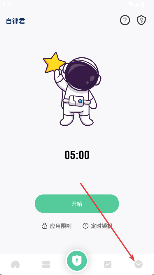 1、打开自律君APP,点击右下角按钮进入个人中心