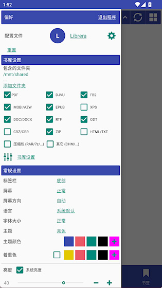Librera是一款多功能电子书阅读工具,具备轻量设计与强大兼容性,涵盖主流电子书和文档格式,支持高度自定义的阅读体验,包括字背景、亮度和翻页方式等设置,满足不同阅读习惯。内置文本朗读功能,配合设备上的语音引擎实现听书。