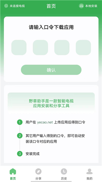 1、首先电视和手机上都安装了对应的野草助手app,然后打开手机上的app输入口令