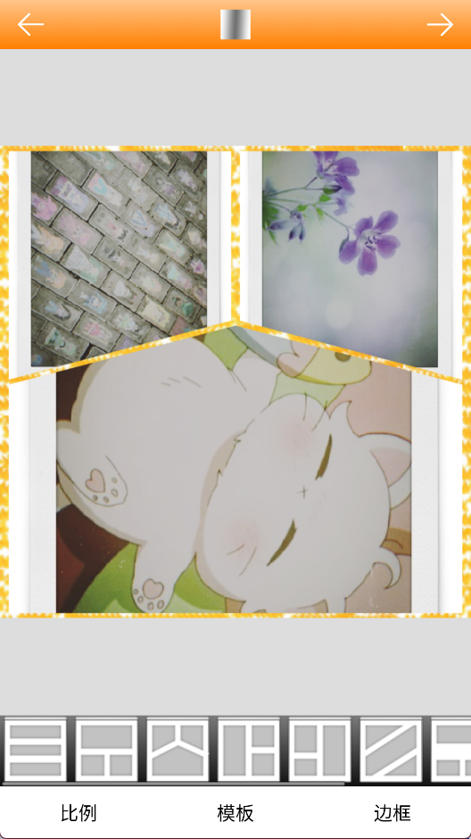 3、选择布局,设置比例和边框纹理,点击右上角按钮保存