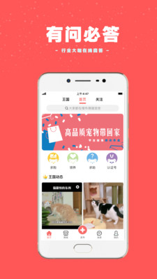 2、首页精选:每天都有精选内容推上首页,一键关注成为好友,相互交流养宠经验;