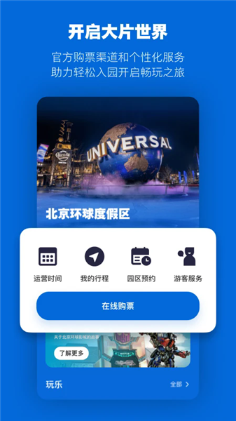 北京环球影城app是由北京环球度假区开发的旅游服务软件,随着假期的逐渐来临,越来越多的小伙伴开始了自己的假日度假计划,其中“北京环球影城”就受到了许多用户喜爱,所以本次小编就给大家带来北京环球影城app,如果你想要及时购票的话,就可以选择在软件上进行,因为官方有时候有优惠的话,你还可以及时抢到,而且操作起来非常的简单,让你了解到所有的流程。