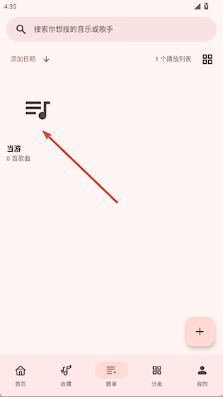 1、进入歌单界面,点击+