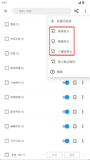2、书源自主导入