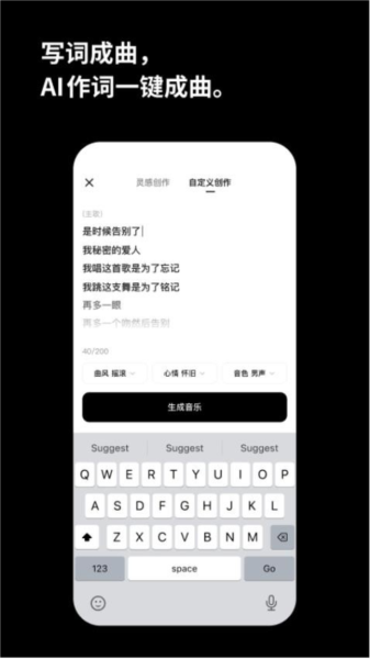 可手动输入歌词,并能一键AI成曲,轻松完成音乐的创作;