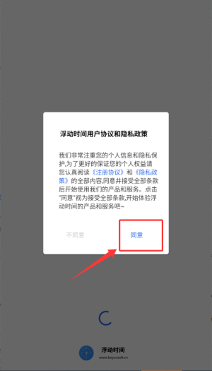 1、启动浮动时间应用,在协议页面点击同意按钮,即可进入主程序;
