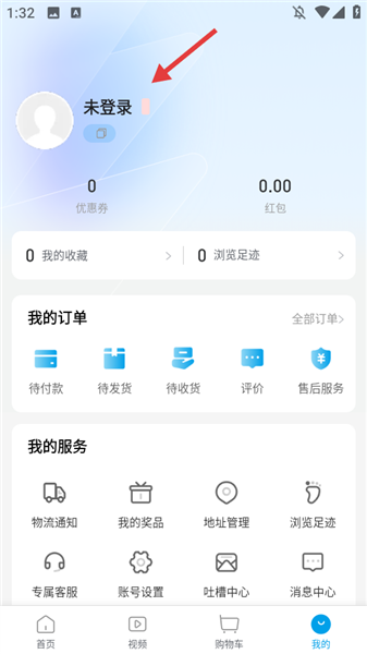 在个人页面,点击【未登录】区域。