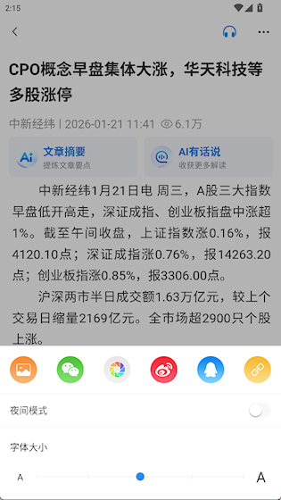 3、点击右上角按钮能分享文章,设置字体大小