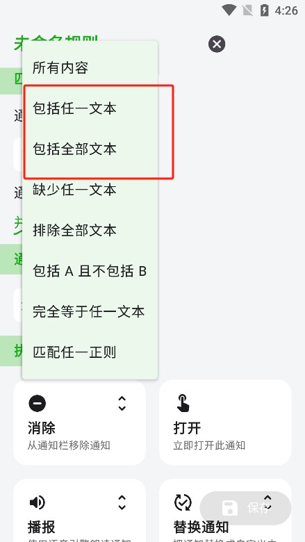 2、精准匹配:多维度设置规则,按来源、标题、内容筛选通知。
