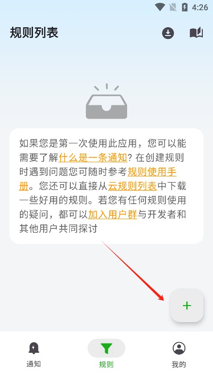 3、进入后点击“规则”选项,再点击+号添加新规则。