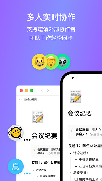 2、实时协作。支持创建团队空间实时协作与同步。