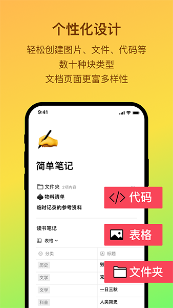 可以快速完成文档和笔记内容创建,获取全新的笔记文档轻松创建记录;