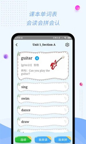 【单词卡片】:涵盖所有小学单词,包含音频、单词图片、翻译等,现在还支持连读哦;