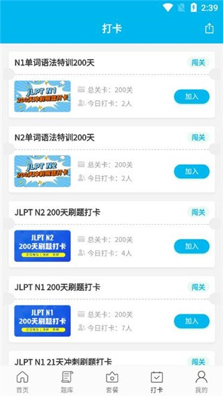 4、打卡闯关:两种模式可选,每日打卡同步检测学习情况。