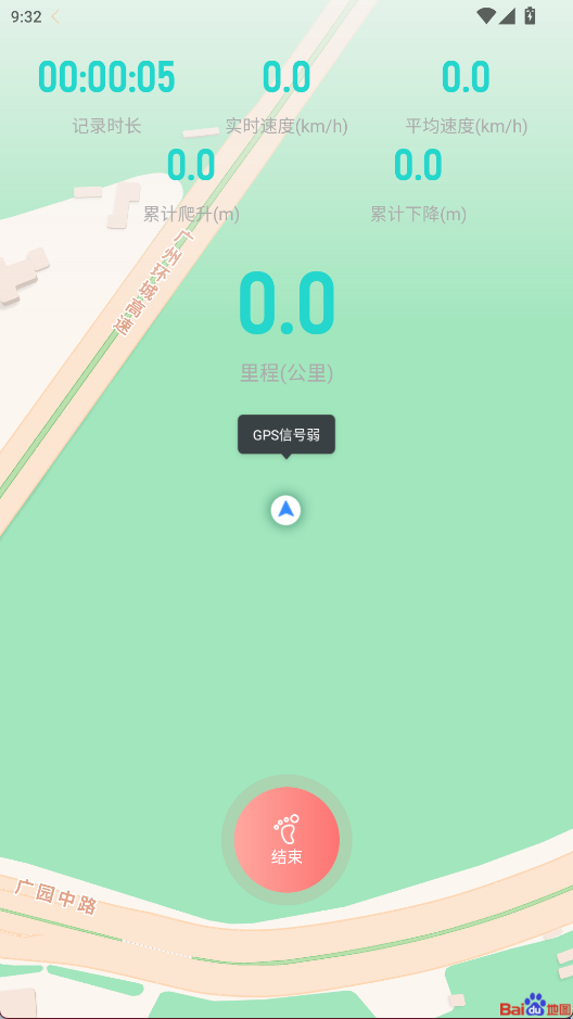 2、长按红色按钮结束记录