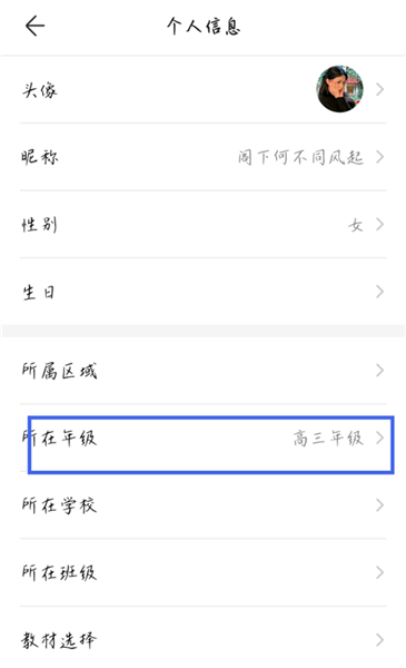2、点击【所在年级】。