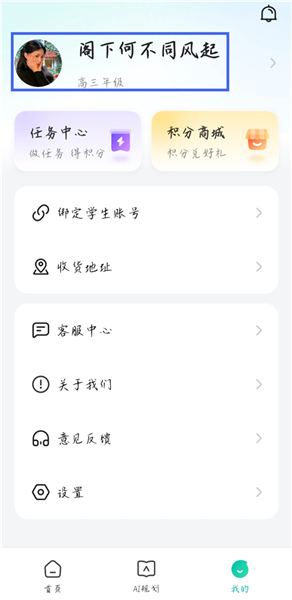 1、进入智学网app的【我的】界面,点击头像。
