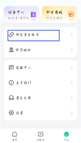 2、点击【绑定学生账号】。