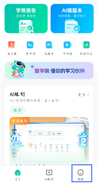 1、进入智学网app,点击【我的】。