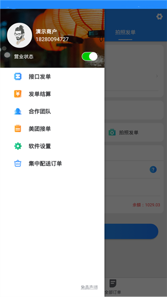 快跑者商户端app是专门为餐厅、蛋糕店、花店等众多有配送需求的商家打造的一款在线实用的商户管理配送的办公学习类软件。在软件内商家可以签订自己的配送团队,通过软件实现高效化管理,提高工作效率。软件为用户提供了接口发单、发单结算、合作团队以及美团接单的功能,用户可以对于配送进行实时追踪,定位配送员的位置。除此之外,软件内还可以一键拨打用户电话,联系客户更方便。