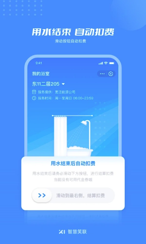 2、扫码淋浴:洗澡用水直接扫描二维码完成支付,无需实体卡片,手机全程操作便捷。