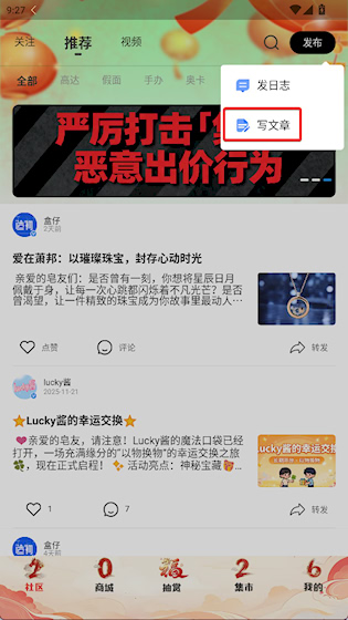 3、选择发文章,填写相关信息进行发布