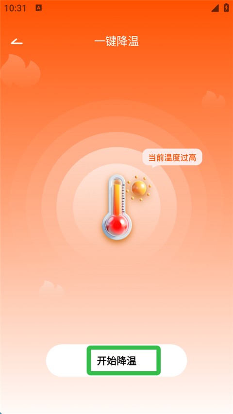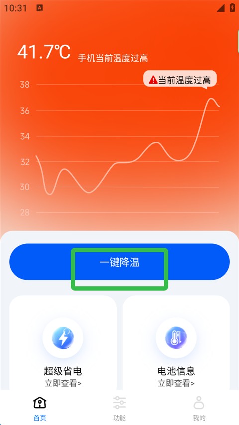 1、打开手机降温散热器APP,查看当前手机温度,点击一键降温按钮;