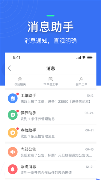 安装、维修、维护、保养等各类工单业务的全流程自动推送处理,让业务更智能!