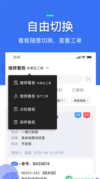 3、增加管理看板,支持一键切换维修看板