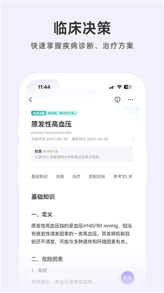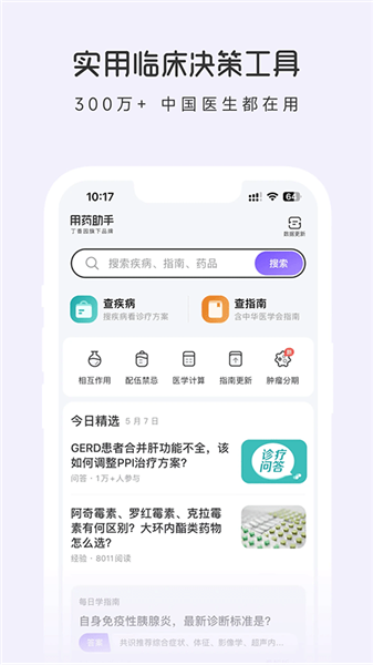 2. 诊疗顾问:4000+ 条疾病的诊疗决策支持,覆盖 90% 临床常见疾病。内容涵盖诊断依据、治疗原则等核心诊疗环节,并提供疾病的「经典用药」信息查询,内容更实用,决策更安全。