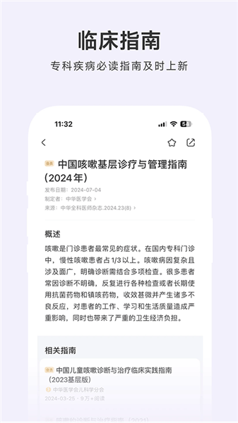3. 临床指南:20000+ 国内、外专业机构发布的指南、共识,支持 PDF 分享或下载。